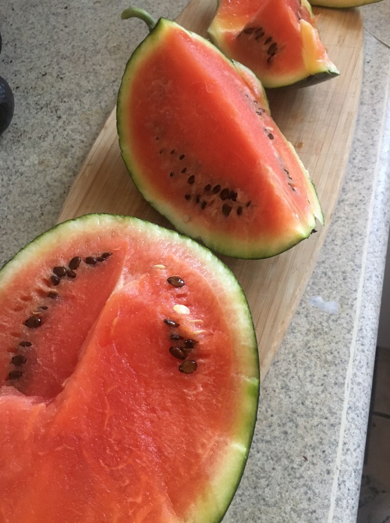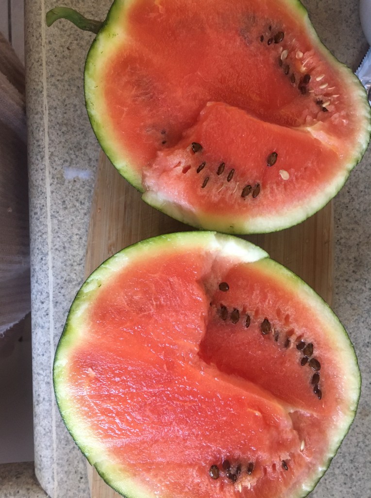 This baby is 4 pounds sugar baby watermelon. It was ripe. You know how I know? We had an hour long conversation in my dream.